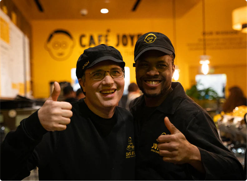 Our team is unique, always professional and proud to welcome you to our 20+ Café Joyeux in France and abroad. Putting a smile on the face of both our crew members and our customers every day is what makes us happy.